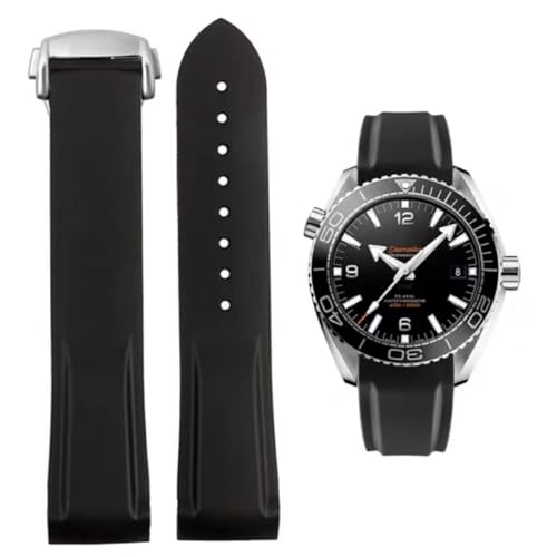 FOUUA Gummi Klockarmband 22mm 20mm Band Silikon Hopfällbart Spänne Viklås Lämplig för Omega Strap [SpeedMaster] [Seamaster] [De Ville]