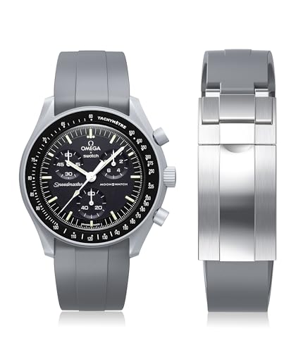 REBANDACE Rem för Moonwatch-klocka, skuren till storlek inget mellanrum silikonband för Omega X-klocka Speedmaster Moonwatch klocka 20 mm, mjuk böjd ersättningsrem för män kvinnor (grå)