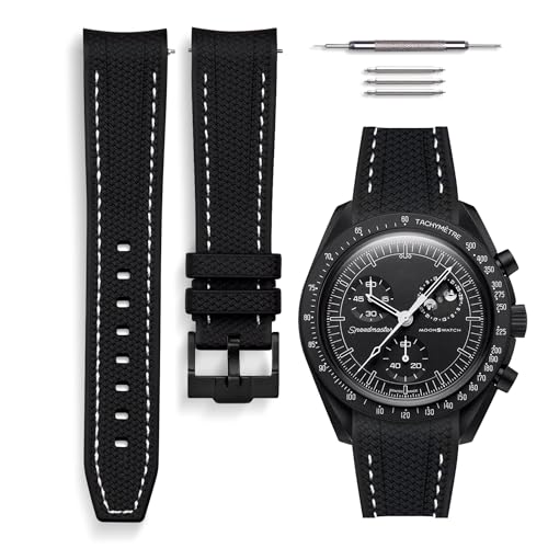 Stanchev Klockarmband för Omega x Swatch MoonSwatch/Rolex Watch/SEIKO Watch, 20 mm, mjuk silikon med böjd design, reservrem för Omega X Swatch Moonswatch Speedmaster, utan mellanrum, för män, kvinnor,