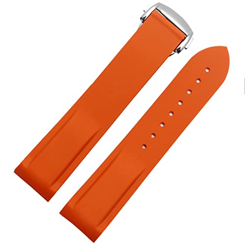 EAMOM Waterproof Silicone Watch Band för Omega Comas Strap Meidus Rudder Rubber Watch Strap 22mm(Orange-silver,20mm)