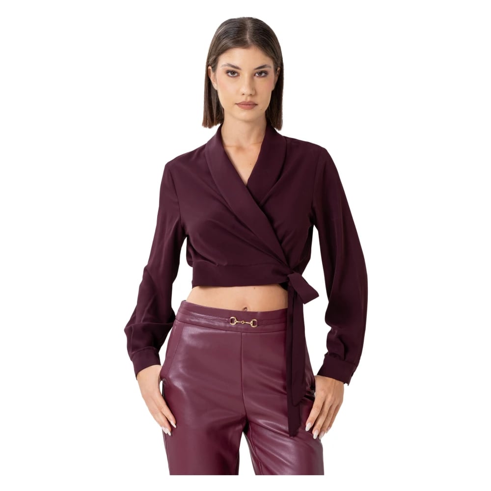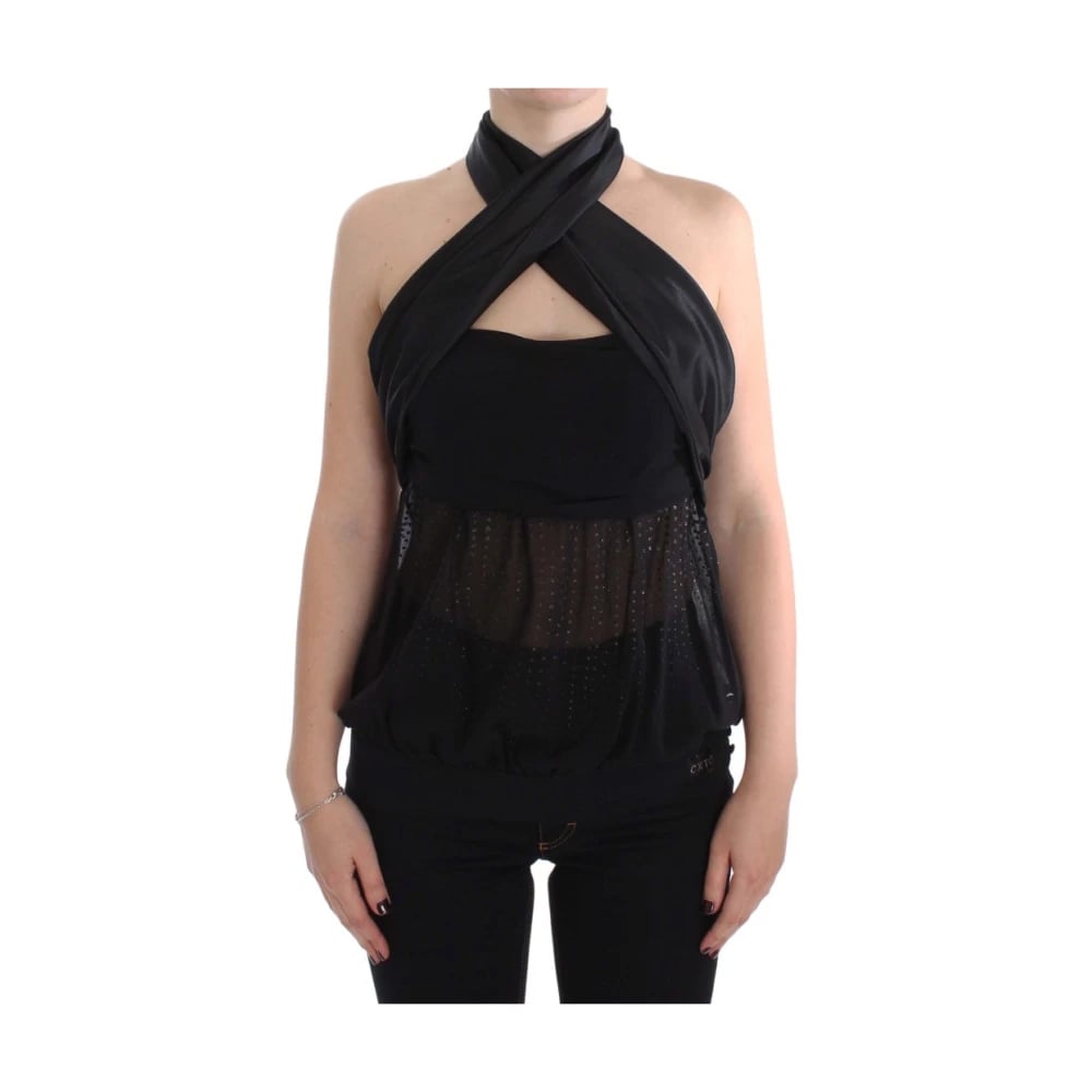 Exte, Toppar , Dam, XS, Polyester, Elegant Svart Omlott Topp Blus