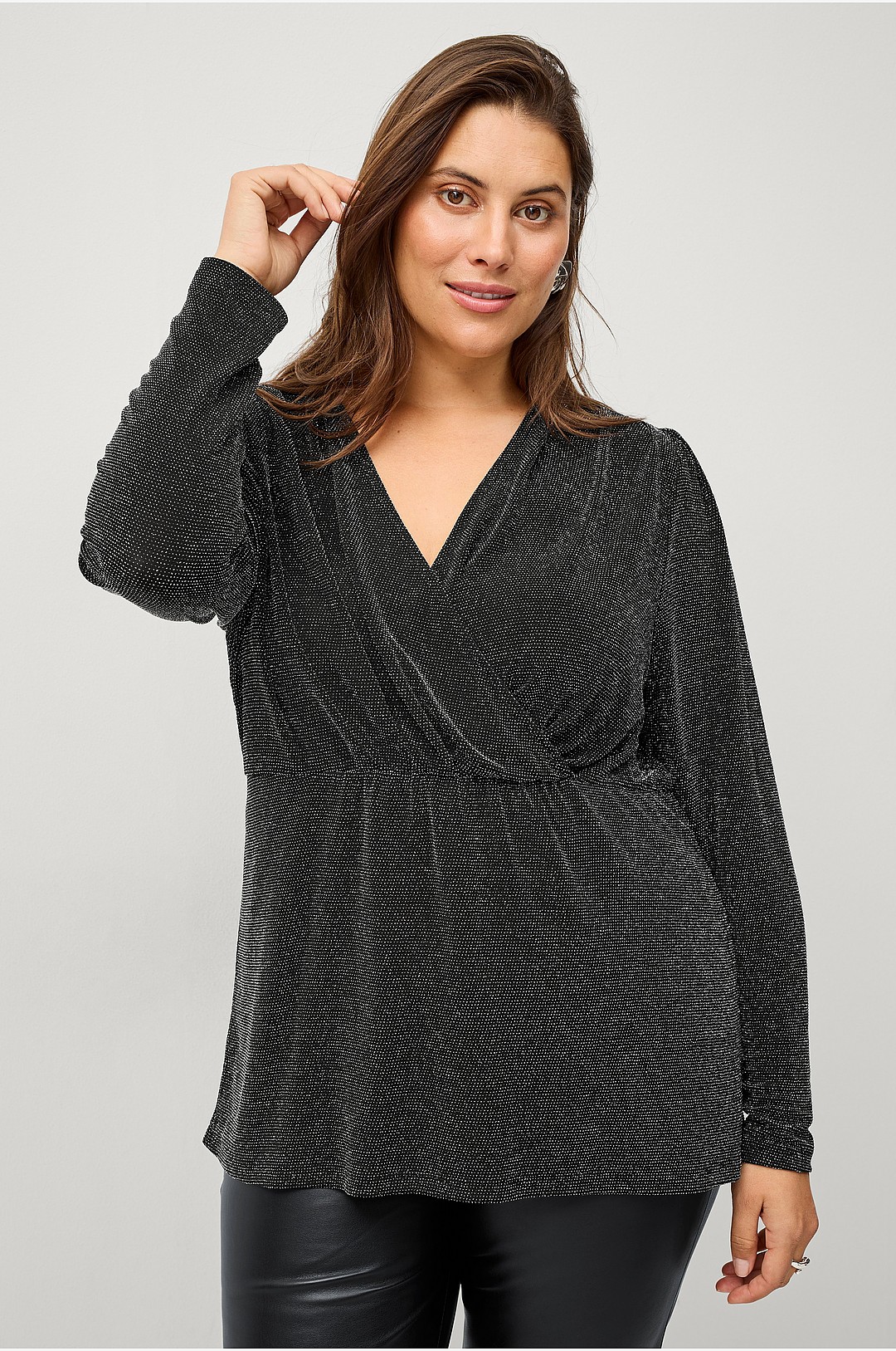 Exte, Toppar , Dam, M, Polyester, Elegant Svart Omlott Topp Blus