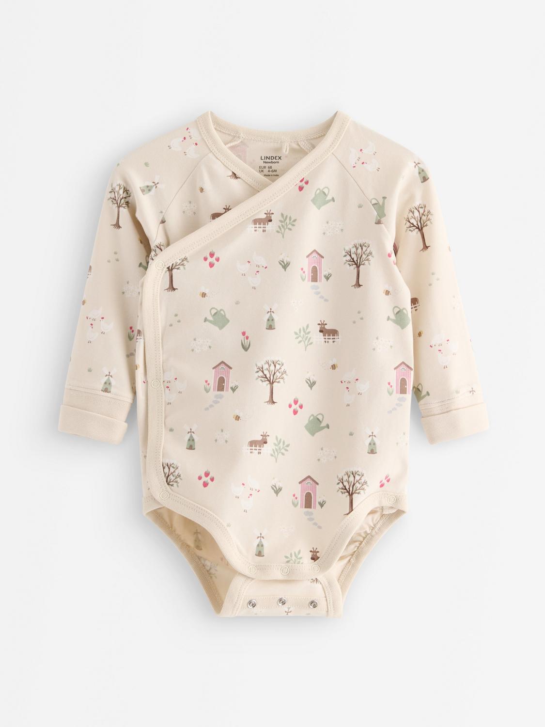 Hust&Claire GOTS Bing Blommig Omlottbody Oat Milk 68 cm Krämfärgad 68 cm kvinna