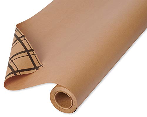 American Greetings vändbart omslagspapper, kraft och pläd (1 jumbo-rulle, 150 kvm. fot.)