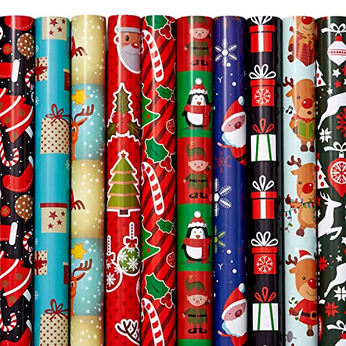 THE TWIDDLERS 20 Ark Julklappspapper, 10 Mönster - Vikta, 70x50cm - Julomslagspapper, Omslagspapper för Jul och Fest