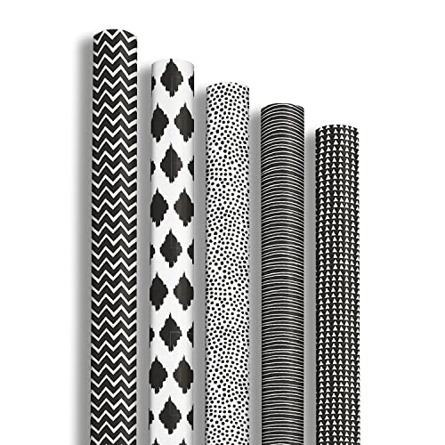 RUSPEPA Omslagspapper rulle – minirulle – 3 olika svarta guldränder design (43,2 sq.ft TTL. / 4 kvm) – 44 cm x 305 cm per rulle