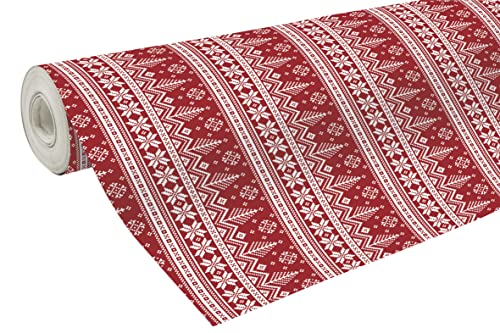 Clairefontaine – ref 201341C – julallians långt rullat omslagspapper (enkel rulle) – 70 cm bredd x 50 m längd, 60 gsm papper – röd skandinavisk design