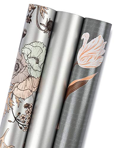 RUSPEPA Rulle med omslagspapper, minirulle i 3 olika designer med silvriga blommor. (42,5 kvadratfot / ca 4 kvm). 43,2 cm x 3,05 m per rulle