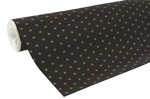 Clairefontaine – ref 201339C – julallians långt rullat omslagspapper (enkel rulle) – 70 cm bredd x 50 m längd, 60 gsm papper – guldstjärnor på grå design