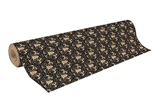 Clairefontaine – ref 201340C – julallians långt rullat omslagspapper (enkel rulle) – 70 cm bredd x 50 m längd, 60 gsm papper – svart och guld höga julgranar design