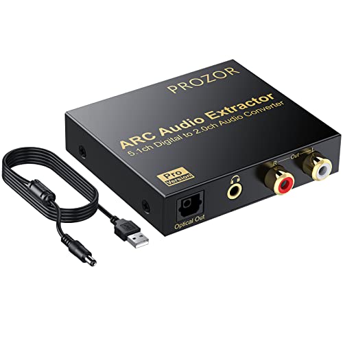 PROZOR DAC-omvandlare 192KHz HDMI ARC Audio Extraktor, Stöd för 5.1ch Digital ARC Audio till Analog RCA L/R Optisk och 3.5mm Jack, ARC Audio Adapter för TV