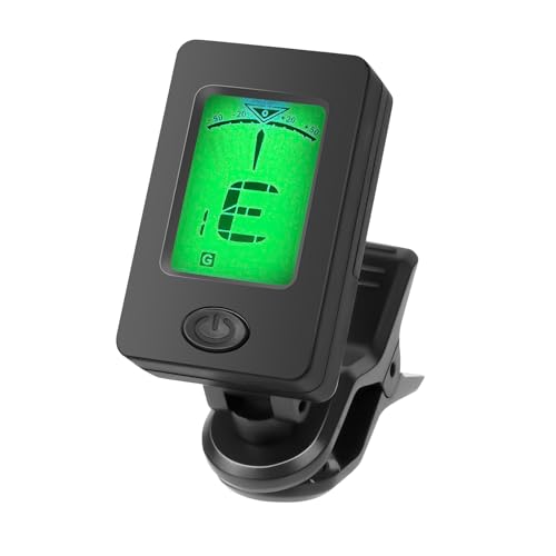 Jognee Gitarrstämmare/tuner, clip-on tuner för gitarr, bas, fiol, C-ukulele, D-ukulele, klar LCD-skärm, kalibrerad tonhöjd