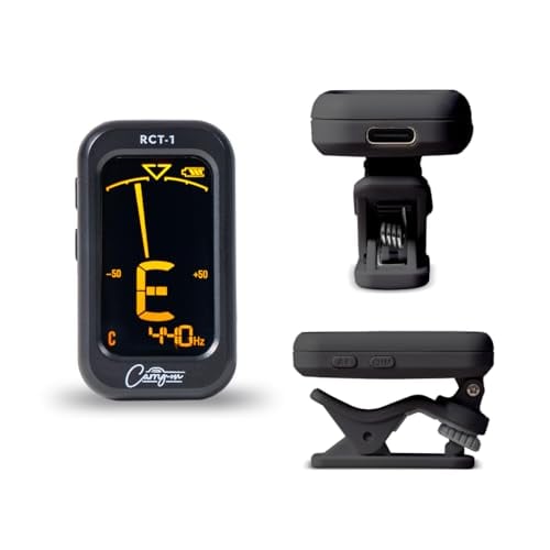 Carry-on RCT-1 uppladdningsbar clip-on kromatisk stämare för gitarr, bas, ukulele C, fiol med stor svängbar LCD-skärm. Svart