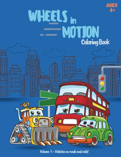 Wheels in Motion! (Volume 1): Vehicles on Roads and Rails: Cars, Trucks, & Trains Coloring Book for Kids Ages 4+