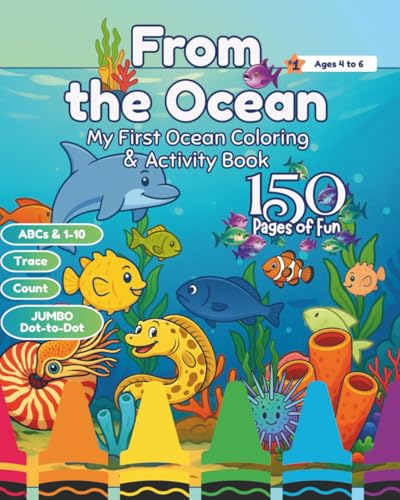 From the Ocean, My First Ocean Coloring & Activity Book Ages 4 to 6: *Inside Sneak Peak on Back Cover* 150 Pgs. Sea Life, Mazes, Trace the Alphabet, ... - Enhance Playtime & Encourage Mindfulness