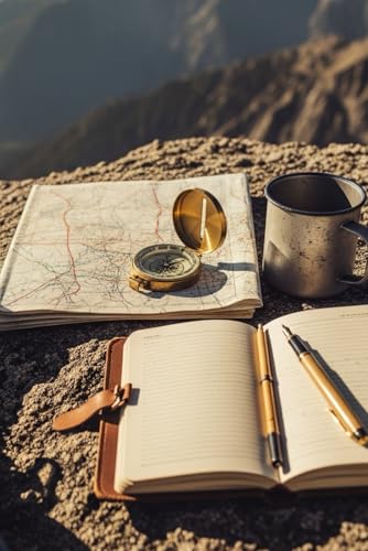 Mountain Adventure Journal Compass, Map & Coffee on the Peak 240 Pages ,6x9 Inch: Capture the soul of every hike — your stories deserve mountain air and morning light