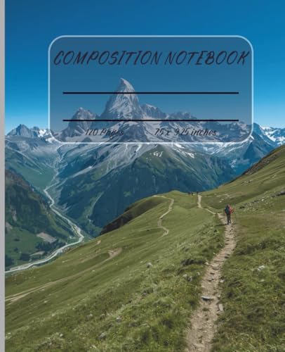 Composition notebook, 120 pages college-ruled pages, 7.5 x 9.25 inches, Trekking on the mountain, Snow at the peak illustration, Bright Sunny Day: ... “Capture Ideas as Bright as the Summit”