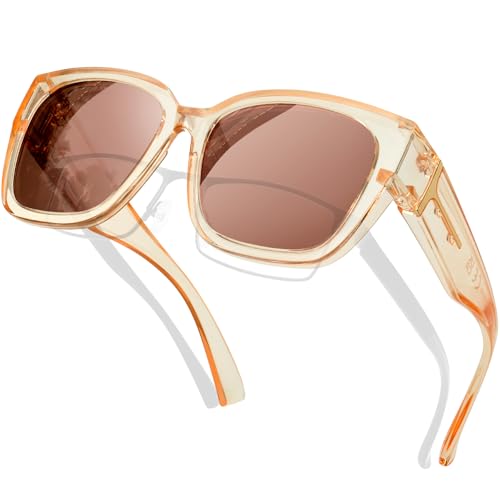 KANASTAL Stor TR90 Solglasögon Över Glasögon Dam Herr Polariserade, Transparent Champagne UV400 Sunglasses On Glasses for Women, Solglasögon Ovanpå Glasögon, Sunglasses Over Glasses Men for Körning