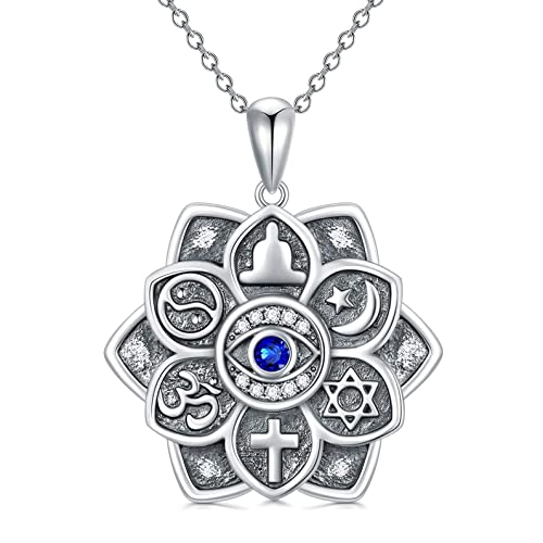ROMANTICWORK Lotus onda ögon halsband sterling silver hänge halsband onda ögat amulett skydd lotus yoga smycken presenter för kvinnor flickor, 0,94 * 0,81 pollici, Sterlingsilver, Kubisk zirkonia