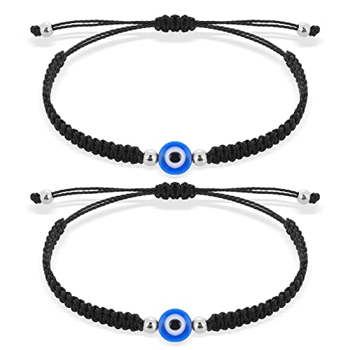 Yolev 2 Delar Onda Ögat Armband - Handgjorda Svart Sträng Skyddsarmband, Tur Vänskap, 27cm, Harts