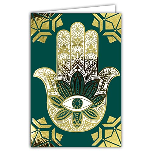 68-3003 Fatma Fatima khamsa khomsa guld glänsande smaragdgrön symbol amulett skydd mot det onda ögat dekoration ram för hemmet med AFIE-kuvert