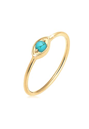 Elli damer äkta smycken ring onda ögat Talisman symbol med howlit ädelsten i 925 sterling silver förgylld, 54 EU, Sterlingsilver, Turkos