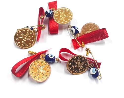 100 st. Nazar Boncuk med emaljerad metall myntpärlor, tugra, säkerhetsnål och sladd, onda ögat, lyckobringare, blått öga, onda ögat, som present till bröllop