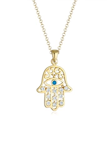 Elli Halskette Damen Hamsa onda ögat mit Kristallen i 925 sterling silver Vergoldet, Sterlingsilver, Kristall