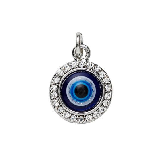 Silverfärgat hänge charm onda ögat med strass & färger Ø13 mm