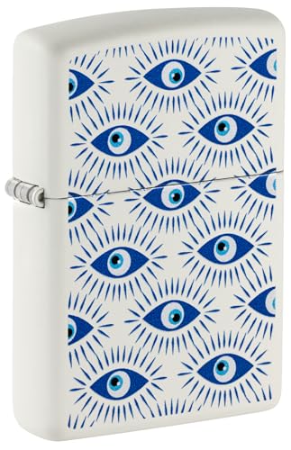 Zippo Stormtändare, matt vit (White Matte), med färgbild av det onda ögat, påfyllningsbar och återanvändbar, med vindskyddad design, presentförpackning, tillverkad i USA