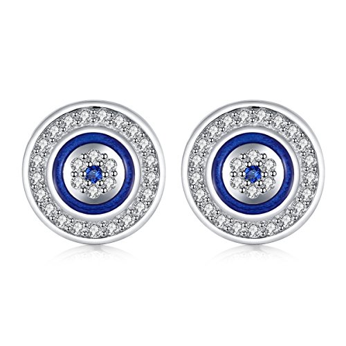Runda blå onda ögat örhängen dia. 10 mm sterlingsilver 925 blå vit kubisk zirkonia med emalj