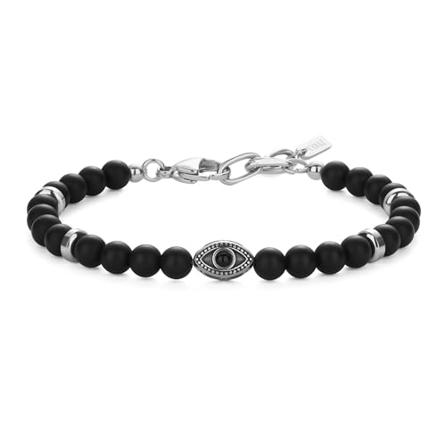 COAI Lyckoamulett turkiskt öga och naturstenspärlor, herrarmband, hård sten onda ögat armband, 19+3cm, Sten, Onyx