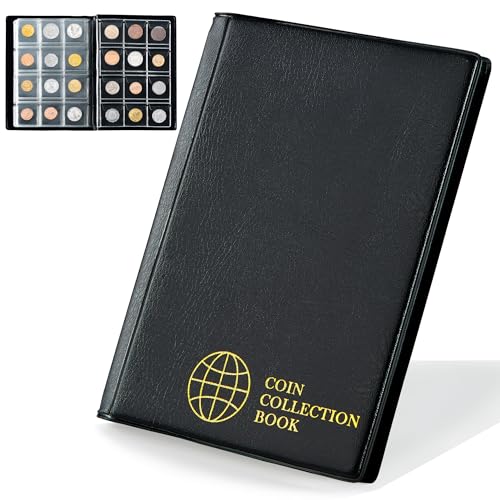 Myntsamling album – mynthållare bokmynt lagringsalbum pengar penny ficka för samlare CS01 (fickstorlek 30 x 30 mm/1,2 x 1,2 tum [120 fickor], elegant svart)