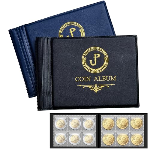 CS42MX1 myntsamlaralbum, 120 fickor, 2 stycken, 35 x 35 mm, för Penny-samling och förvaring, lämplig för Toonie, Dime, Pence, center, kvarter, nickelsvart och blå