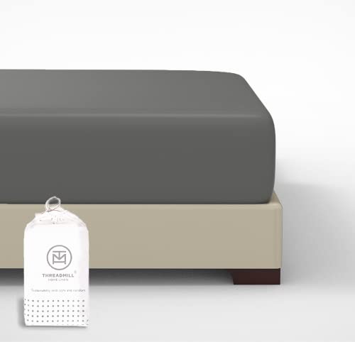 Threadmill Cotton Fitted Sheet Full Size - 300 Thread Count 1 Piece Dark Grey 16 Inch Elasticized Deep Pocket Sateen Sheets for Full Size Bed - Snug Fit Soft & Durable Hotel Quality Bottom Sheet
