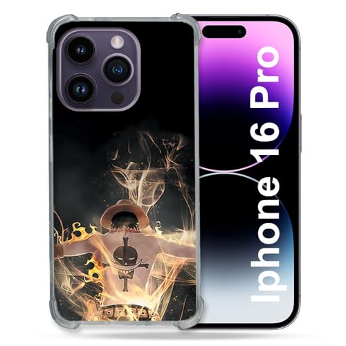 Cokitec Förstärkt fodral för Apple Iphone 16 Pro Manga One Piece Ace svart