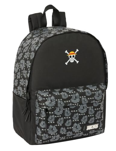 Safta ONE PIECE PIRATES - Ryggsäck för bärbar dator 14,1 tum, idealisk för ungdomar i olika åldrar, bekväm och mångsidig, kvalitet och styrka, 31 x 16 x 40 cm, svart, M, Avslappnad