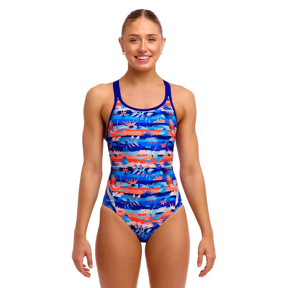 Speedo Baddräkt för kvinnor One Piece Prolt Cross Back tryckta vuxenlagfärger Vågsafir/guld 28