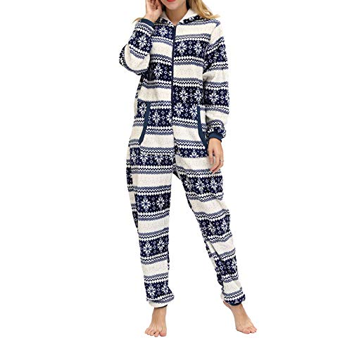 Cicilin One Piece Pyjamas för kvinnor Tryckt Flanell Onesie Vuxen Jumpsuit Nattkläder, BLÅ, XL