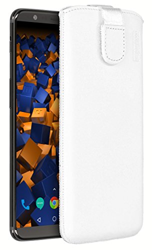 mumbi äkta läderfodral kompatibel med OnePlus 5T skal läder väska Case Wallet, vit