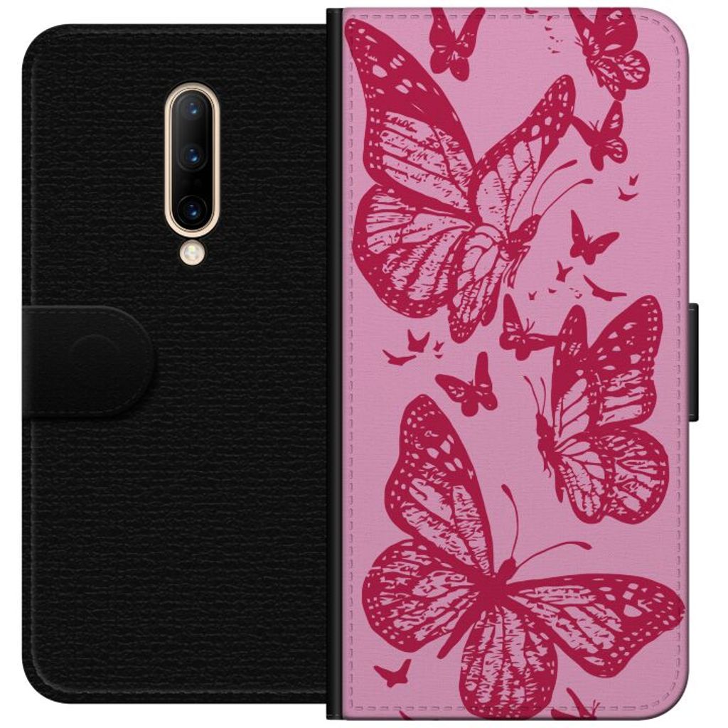 OnePlus 7 Pro Svart Plånboksfodral Fjärilar