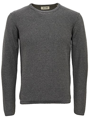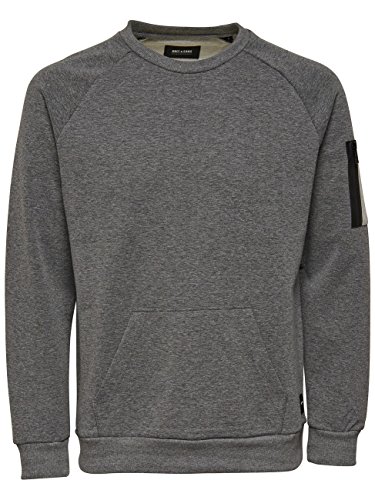 Only and Sons mäns Spot Crew Neck NOOS långärmad tröja, Mörkgrå melange, XL