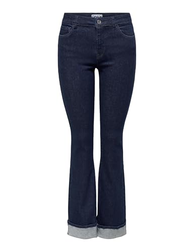 ONLY Onlmila MW Flared Foldup Gua028 DNM Noos, blå mörka jeans, 31 W x 34 l dam, Mörkblå jeans, 31W / 34L