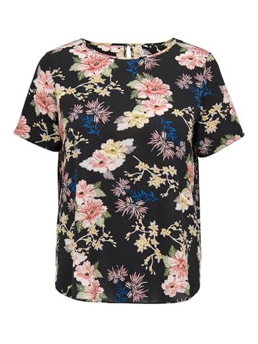 ONLY CARMAKOMA damer Carvica Ss Top WVN Noos blus, Black/Aop: lena blomma, 44 SE/L