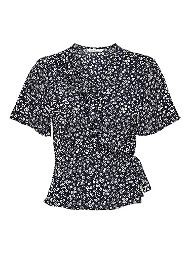 ONLY Dam Onlcarly S/S Wrap Short WVN Top, Nattsky/Aop: vit blomma, 36 SE