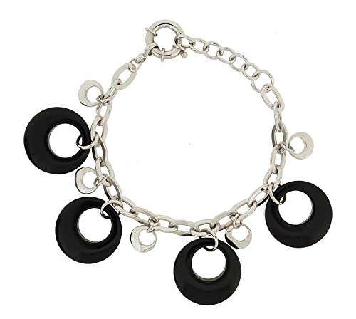 M & M smycken Armband Dam 925 Silver Rhodinerad Onyx Svart Rundslipning 19 cm – MA-202018
