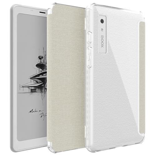 TUDIA SKN FLIP Designad för 7 tum Onyx Boox Go 7/Color 7 (Gen I 2024/Gen II 2025/Gen 2) fodral – [Förbättrad automatisk uppvakning/sömnteknologi] stötsäker transparent TPU-texturerat läder trippelvikt