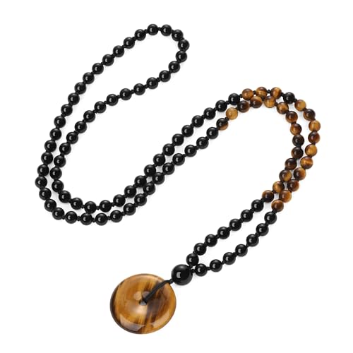 COAI Malakette 108 Malala-halsband med handknuten naturlig ädelsten pärlhalsband och Ping'an Kou-hänge för män och kvinnor, 86cm, Sten, Onyx Tigeröga