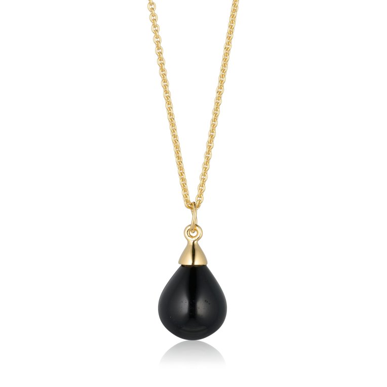 Blicher Fuglsang Halsband i guldpläterat silver med onyx, kedja 42-45-50cm