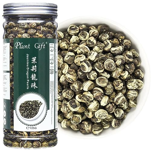 PlantGift Jasmine Dragon Pearls Grönt Te 130G/4.58oz - Lösa Blad, Pärlor Te Drake Boll, Bästa Jasmin Te, Oolong Te